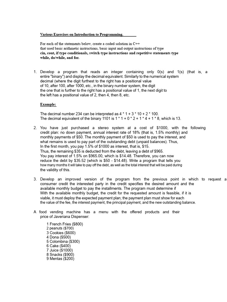 Programming exercises for conditionals and loops | PDF | Interest | Credit