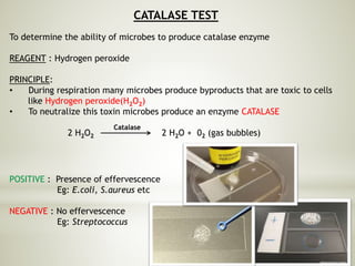 Biochemical tests - Catalase Test Catalase breaks hydrogen peroxide ...