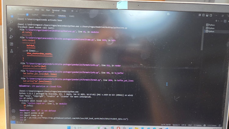 Vs code에서 run python file실행 오류 : 지식iN