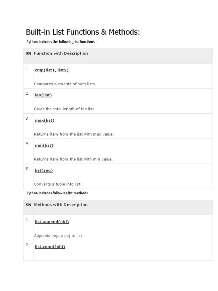 Python Built-in List Functions | PDF | Software Development ...