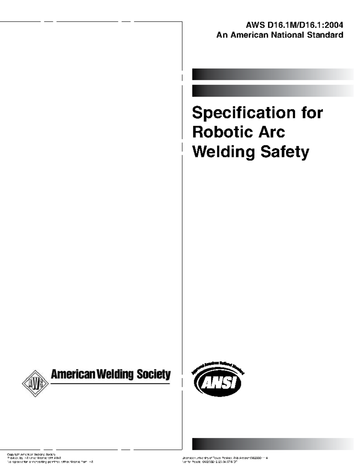 AWS D16.1-2004 Specification for Robotic Arc Welding Safety Standards ...