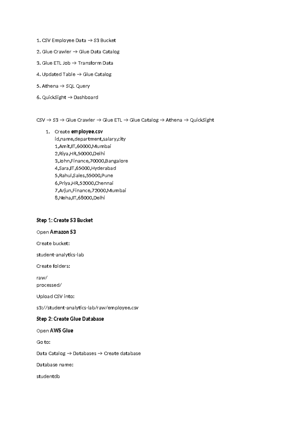DP-1 - Tutorial: AWS Glue ETL & QuickSight Dashboard Guide - Studocu