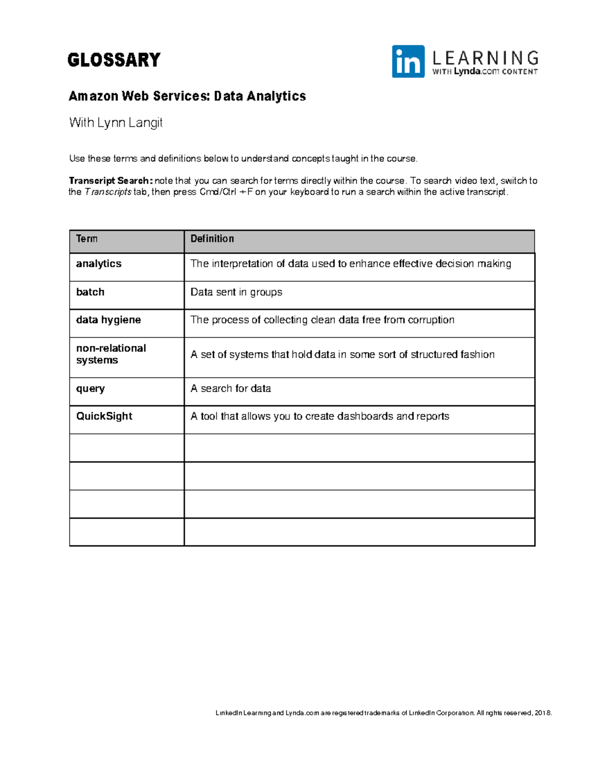 Glossary for AWS Data Analytics Concepts and Terms - Studocu