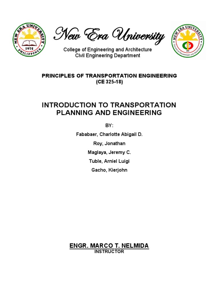 Introduction To Transportation Engineering and Planninggroup 1 | PDF