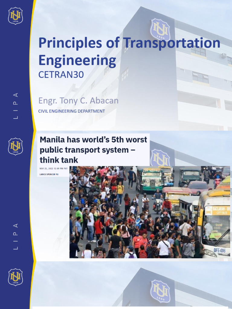 1 - Introduction To Transportation Engineering | PDF | Metro Manila ...
