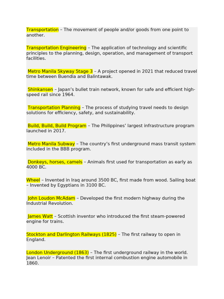Transpo reviewer - Introduction to Transportation Planning and ...