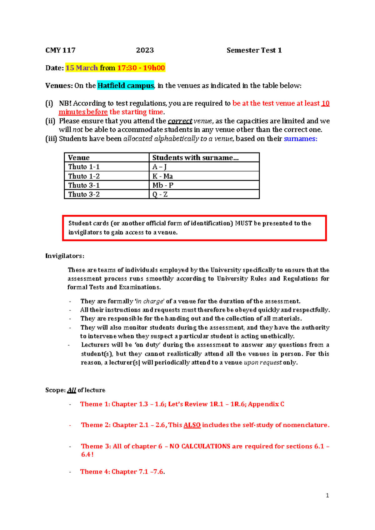 20240304 Semester Test 1 Detailed Announcement - 1 CMY 1 17 2023 ...