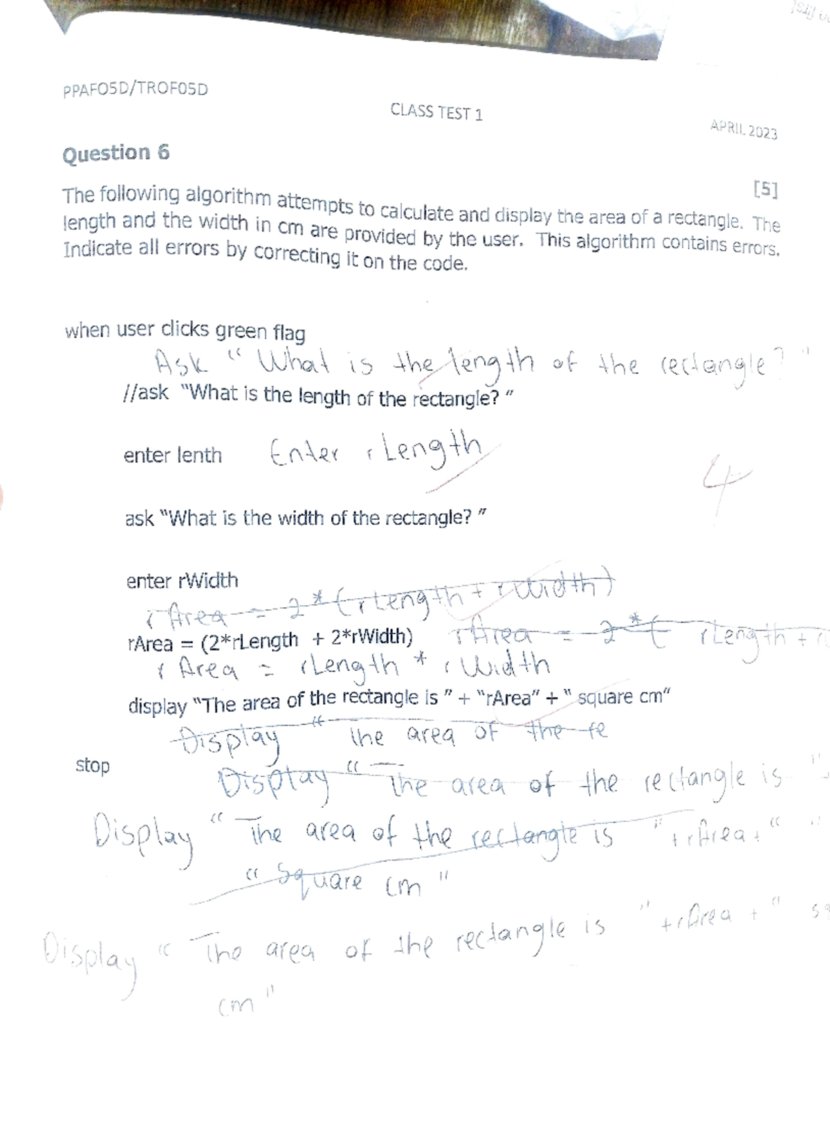 CLASS TEST 3 PPAF05D TROF05D - Principles of Programming 2024 - Studocu