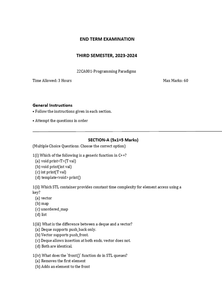 Principles of Programming: Exam Questions & Answers | Course Hero