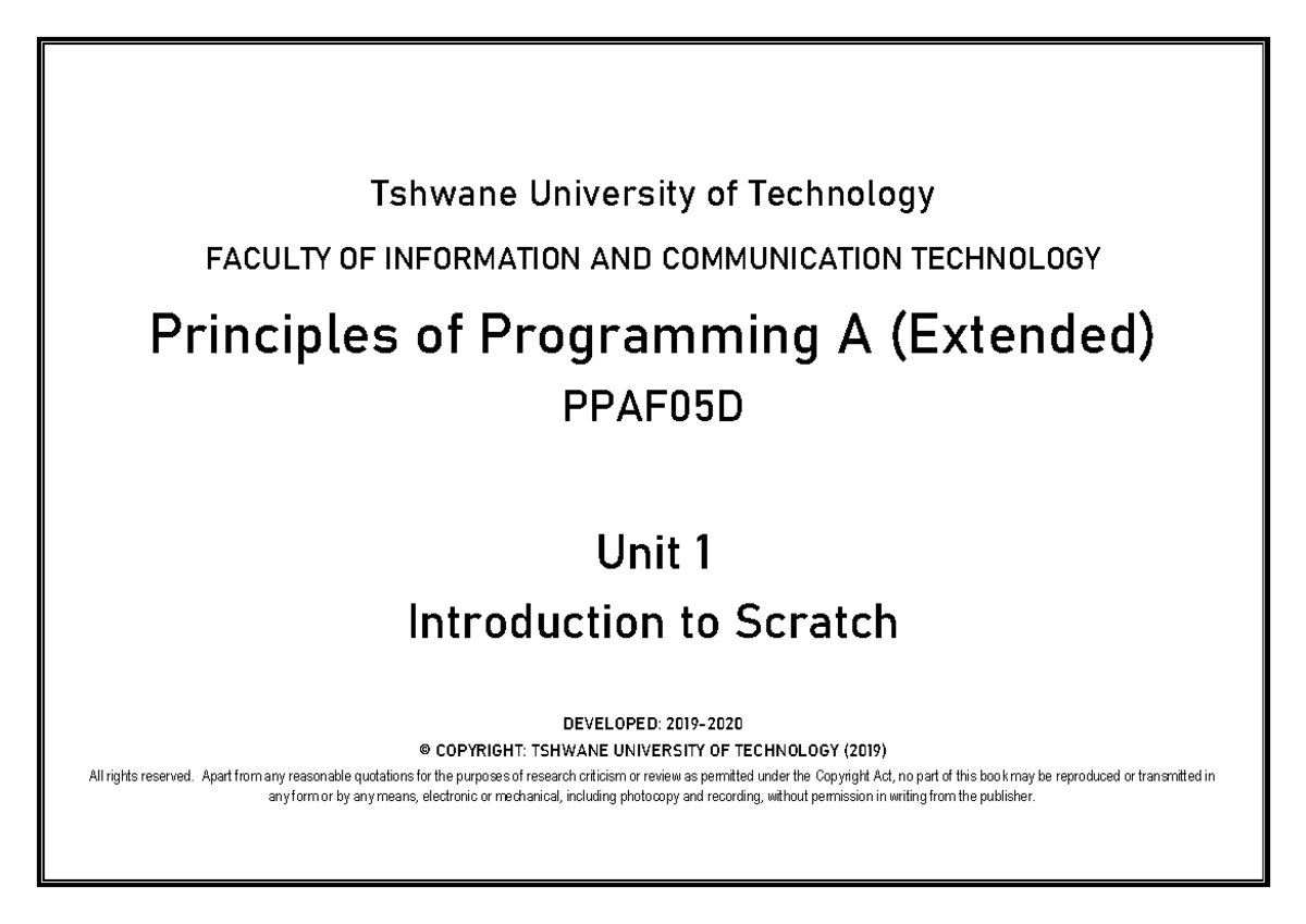 Scratch Programming PPAF05D Unit 1: Introduction to Scratch - Studocu
