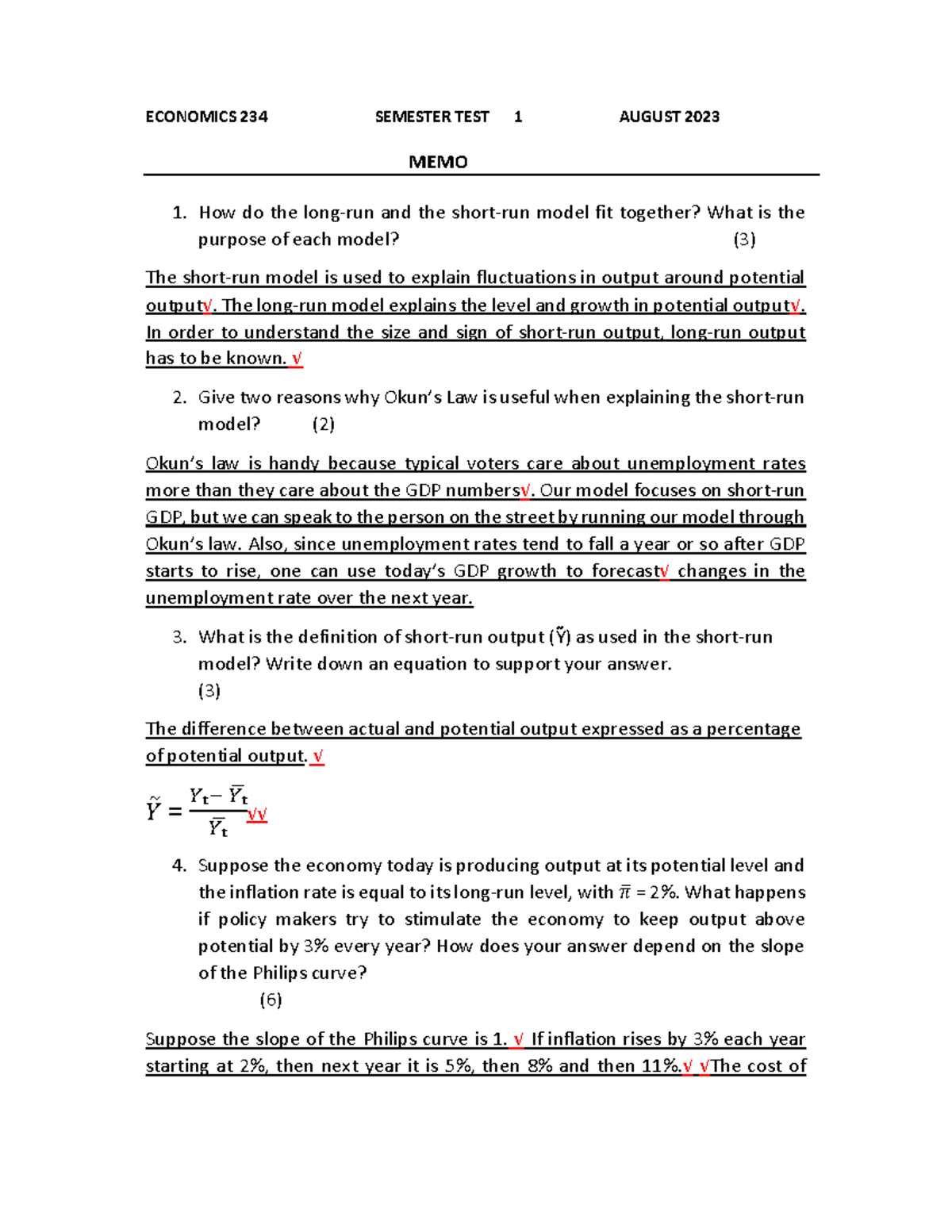 EKN234 Semester Test 1 2023: Detailed MEMO and Explanations - Studocu