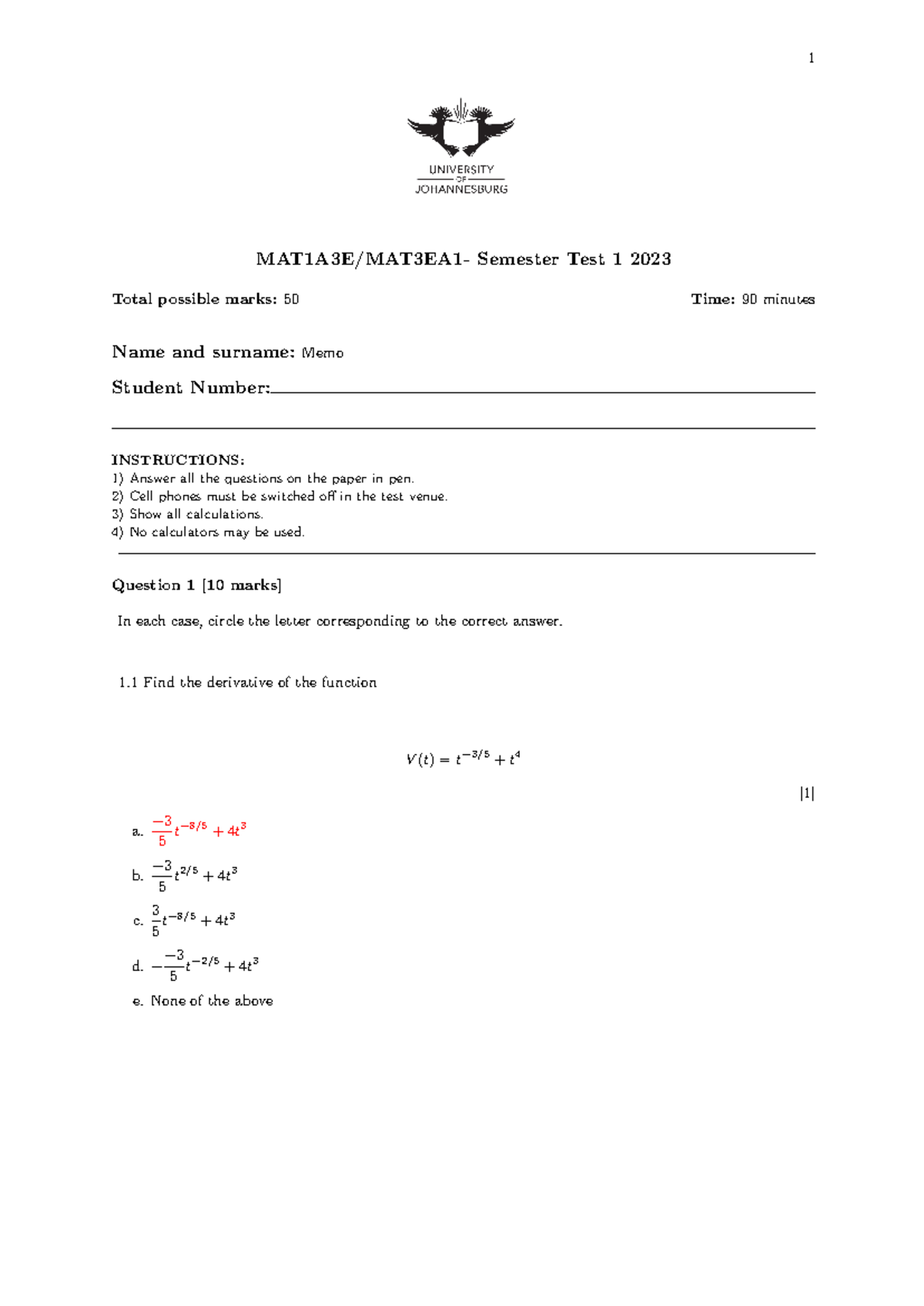Semester Test 1 2023.pdf - University of Pretoria Faculty of Natural ...