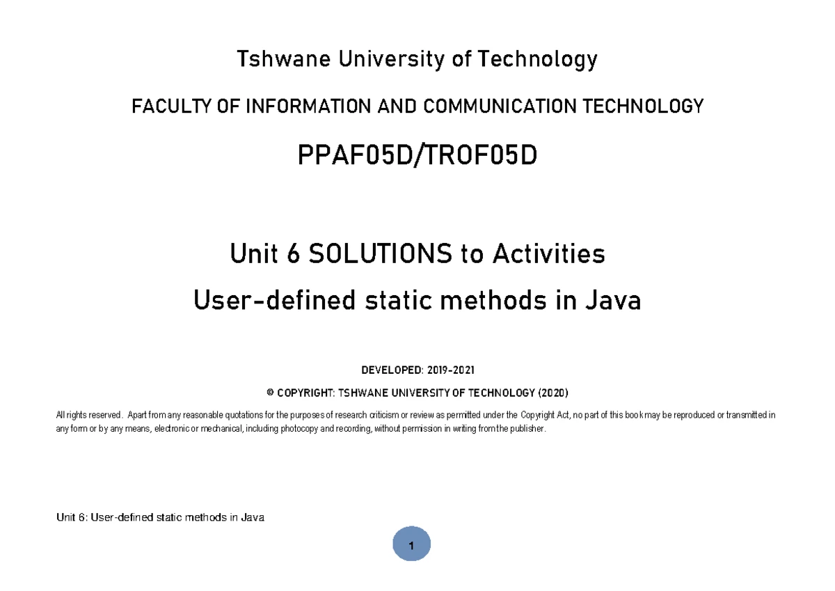 PPA TRO F05D Unit 4 (Java part 2) Final-1 - Tshwane University of ...