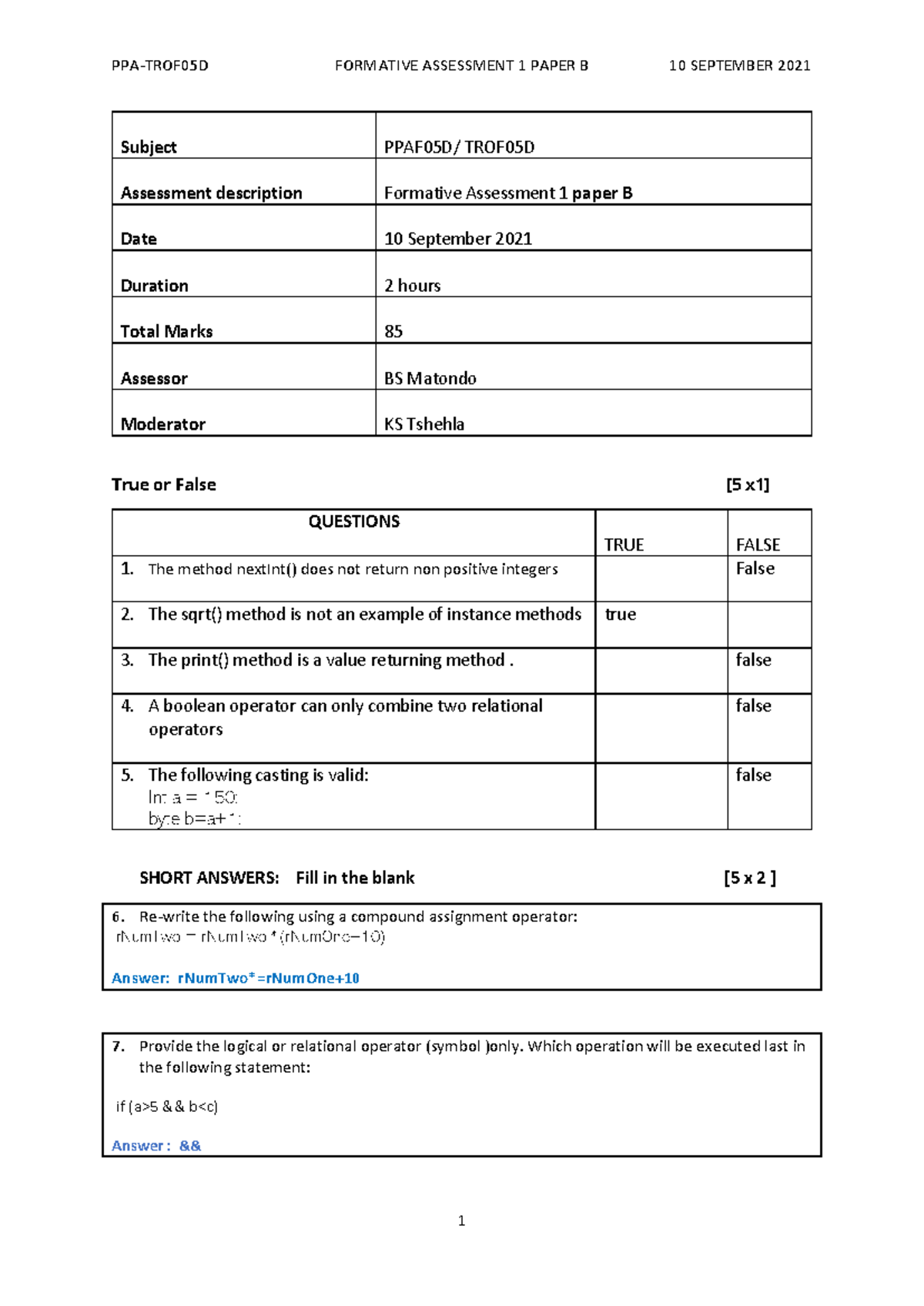 Semester Test 1A Memo: Principles of Programming (PPAF05D, TROF05D ...