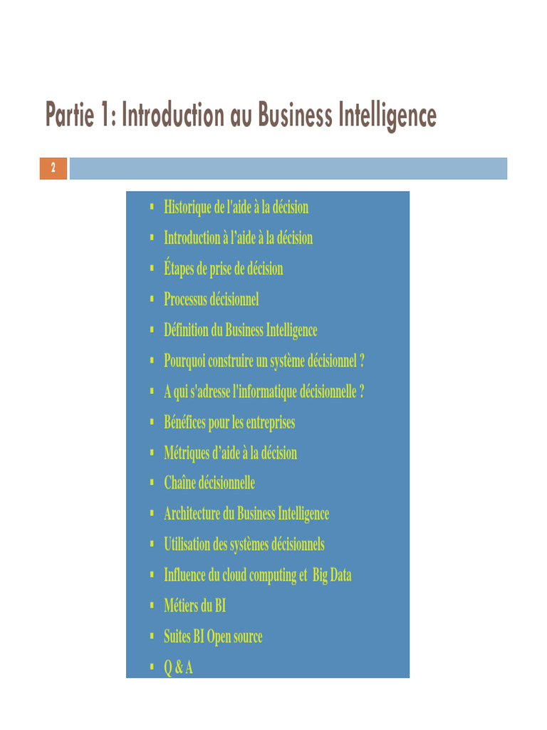 Partie 1: Introduction Au Business Intelligence | PDF | Informatique ...