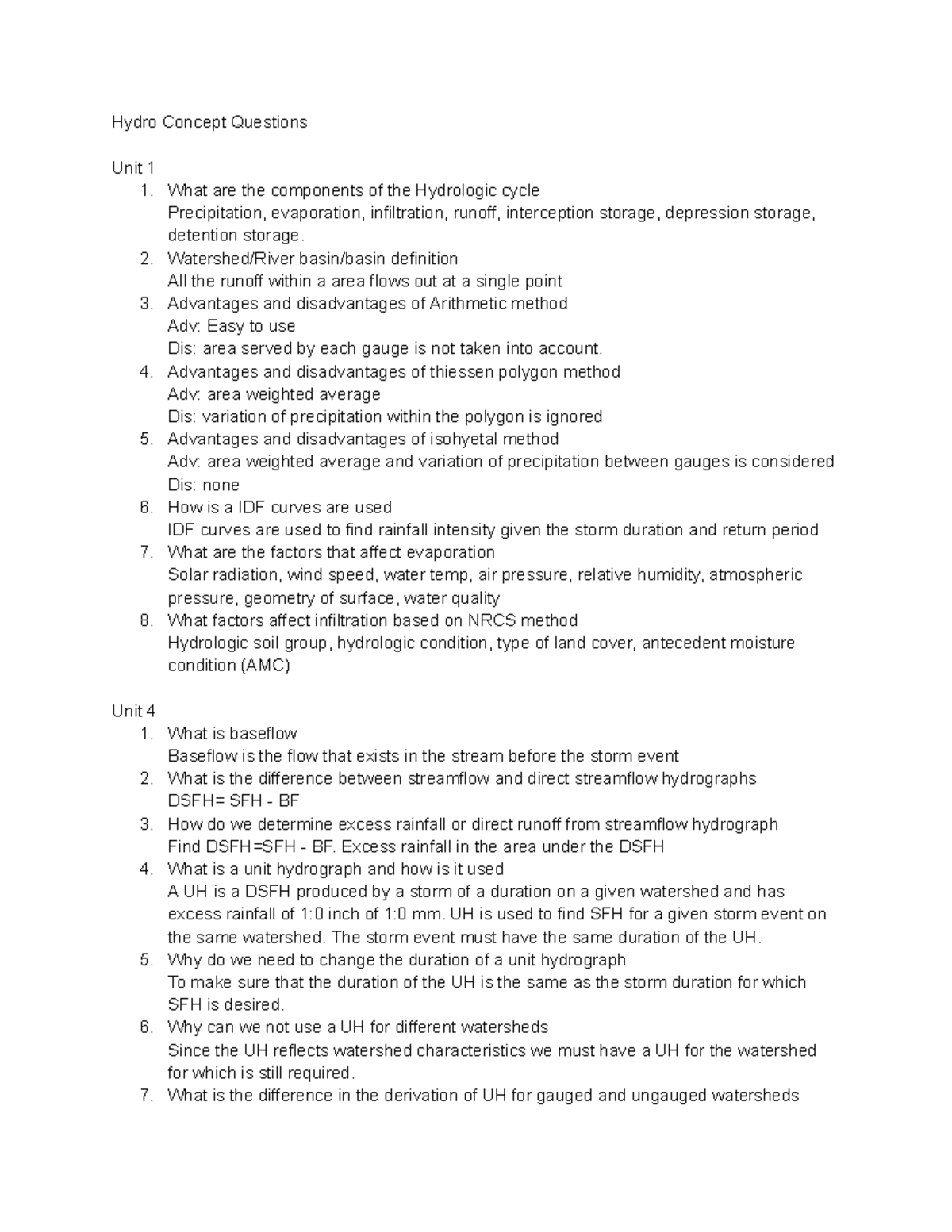 Hydrology Concepts Test 1 Notes (Course Code: Hydro) - Hydro Concept ...