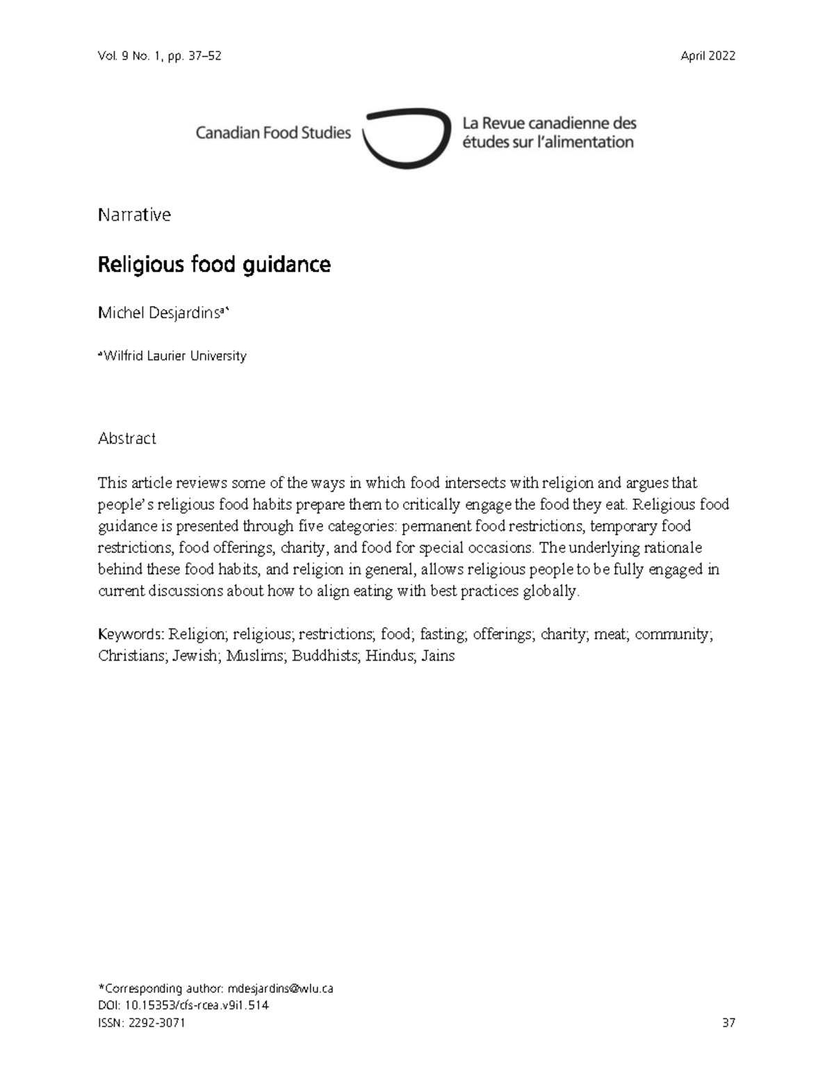 Religious Food Guidance: Insights from Fieldwork (Vol. 9 No. 1, April ...