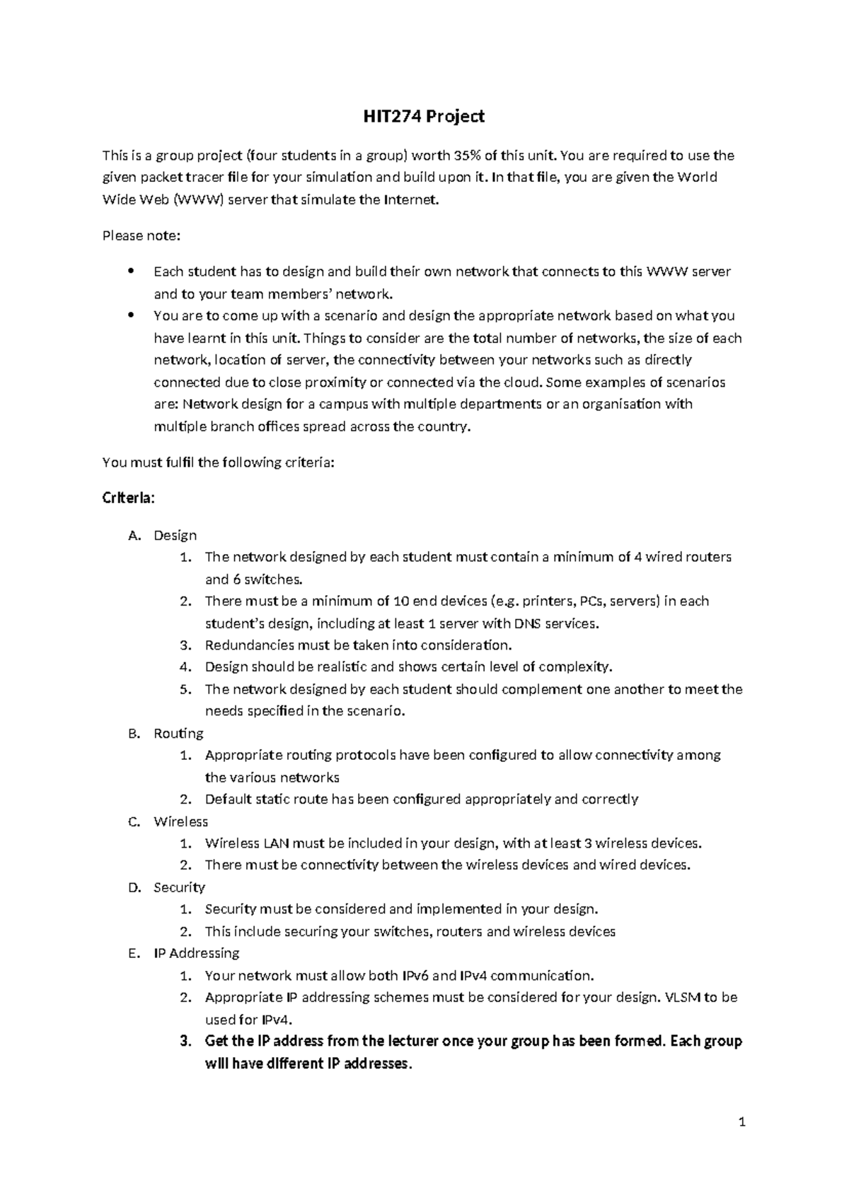 HIT274 Project - Network Design and Simulation Guidelines - Studocu