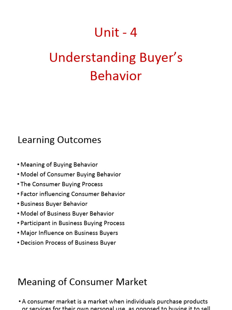 Unit 1 Introduction to Consumer Behavior | PPTX