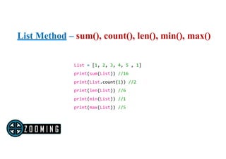 Brief Explanation On List and Dictionaries of Python | PPTX