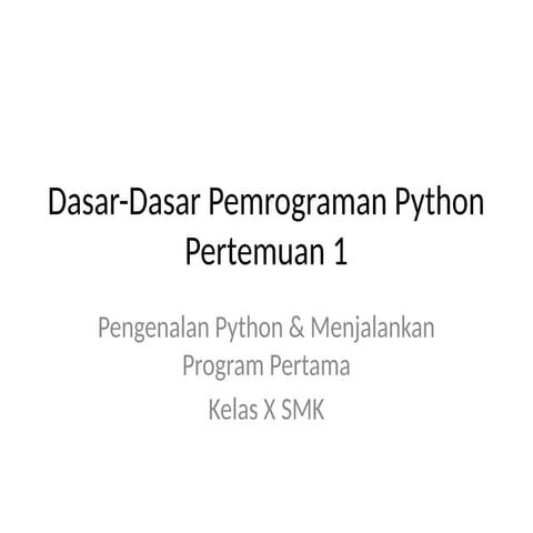 Materi Python Pertemuan 1 dasar Dasar Python SMK Kelas X | PPTX