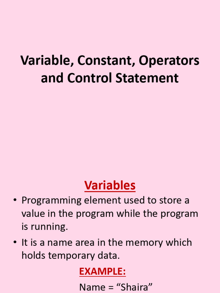 Variables, Constants, and Operators in Programming | PDF | Control Flow ...