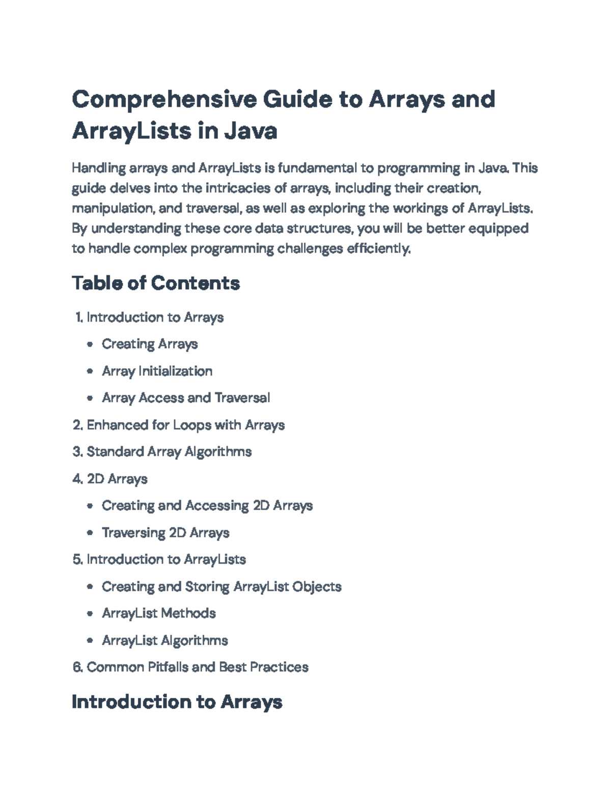 Mastering Java Arrays and ArrayLists: A Comprehensive Guide | Course Hero