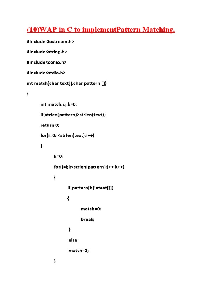 Solved Write a program for A Pattern Matching Problem | Chegg.com