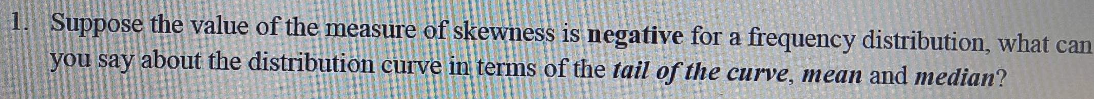 Solved: Suppose the value of the measure of skewness is negative for a ...