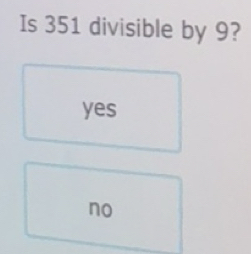 Solved: Is 351 divisible by 9? yes no [Math]