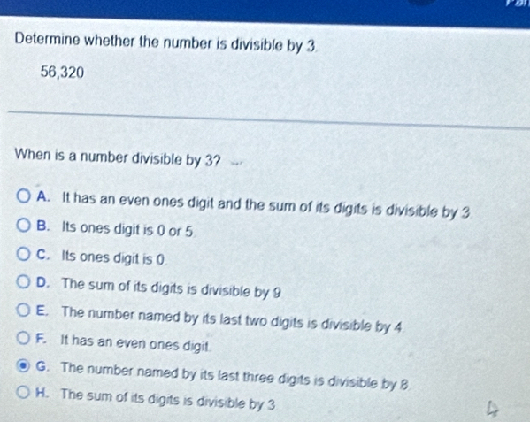Solved: Determine whether the number is divisible by 3. 56,320 When is ...
