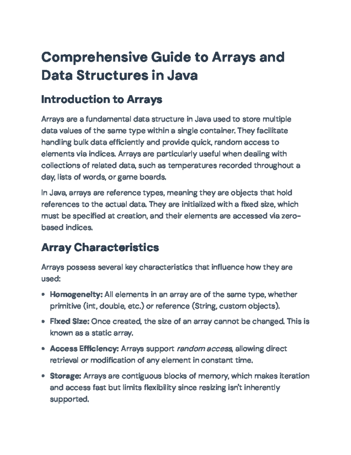 Comprehensive Guide to Arrays & Data Structures in Java - Studocu