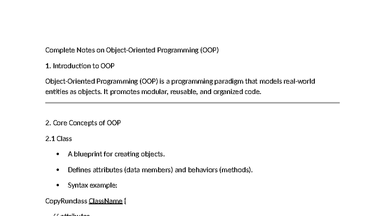 OOP Concepts and Java Implementation Notes (CS101) - Studocu