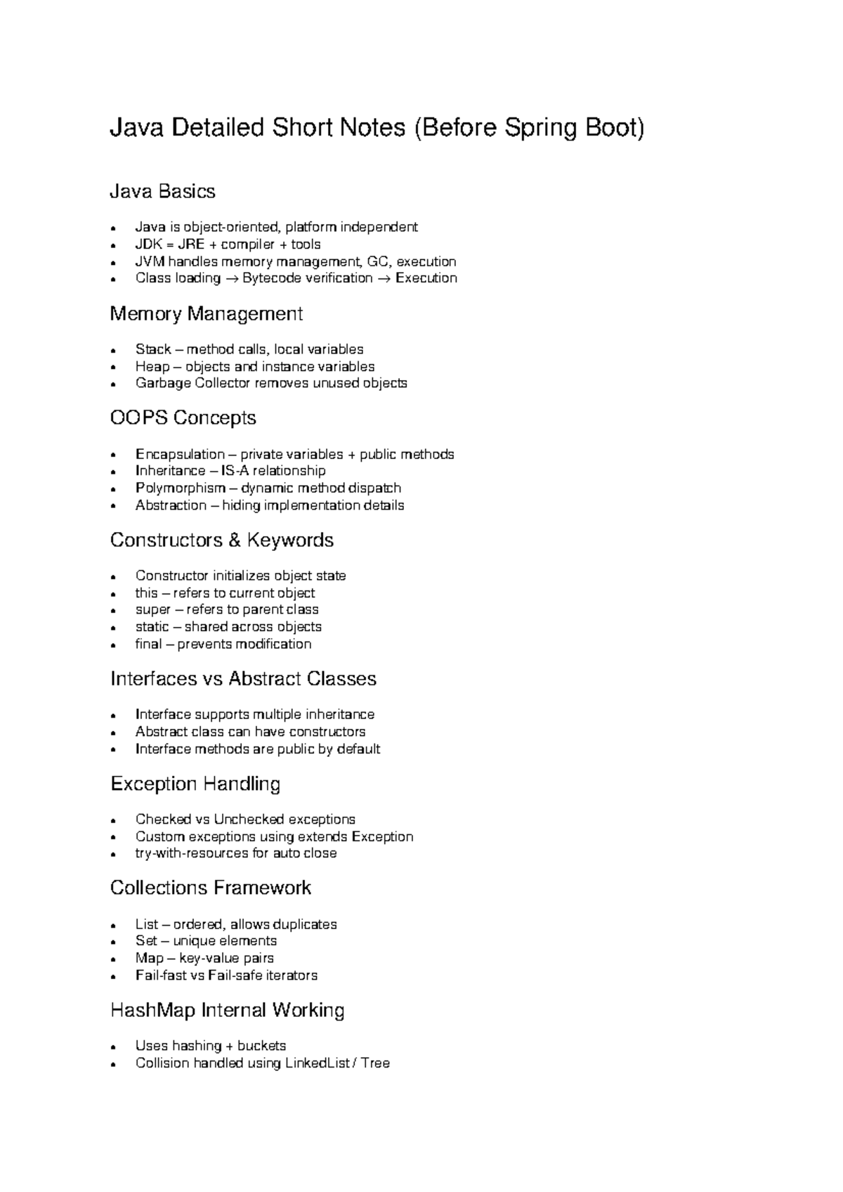 Java Detailed Notes (Before Spring Boot) - Key Concepts & OOP - Studocu