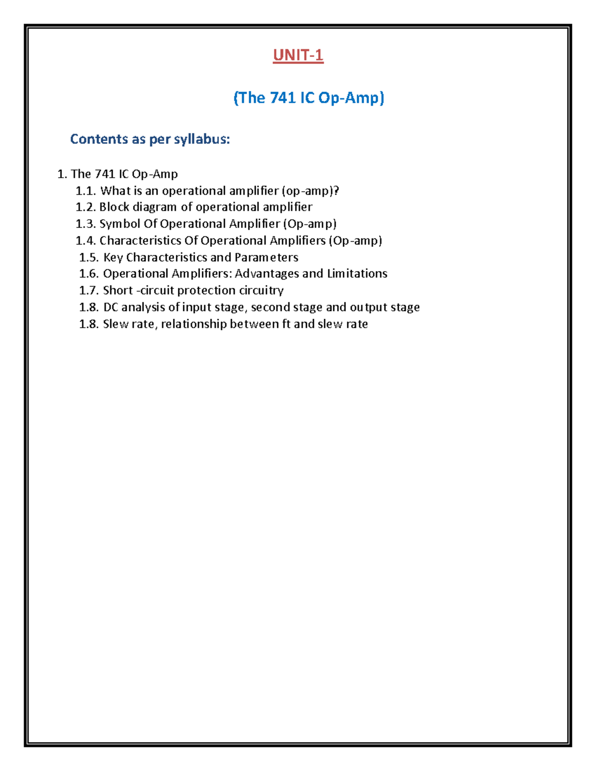 Unit 1: Overview of the 741 IC and Operational Amplifiers (AKTU) - Studocu