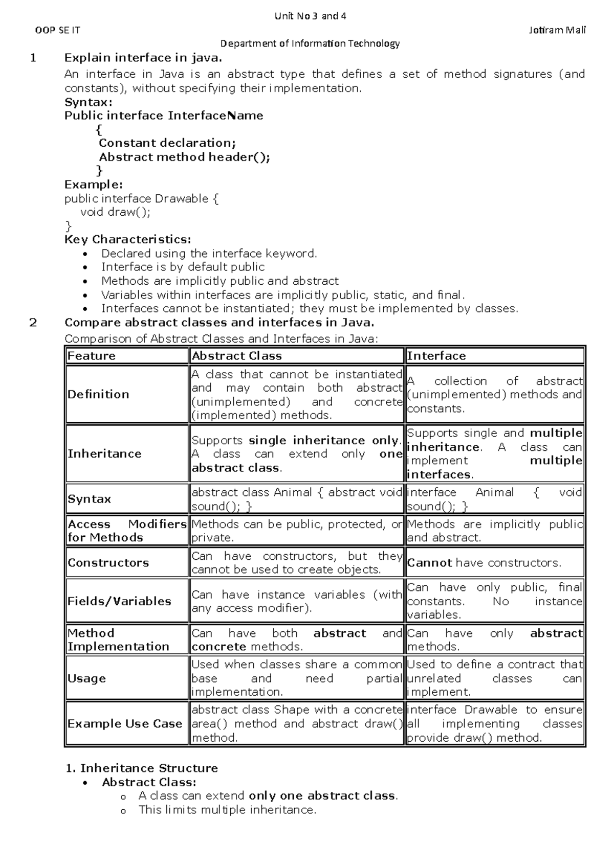 Unit 3 & 4 OOP Concepts Overview - SE IT 1 2 by Jotiram Mali - Studocu