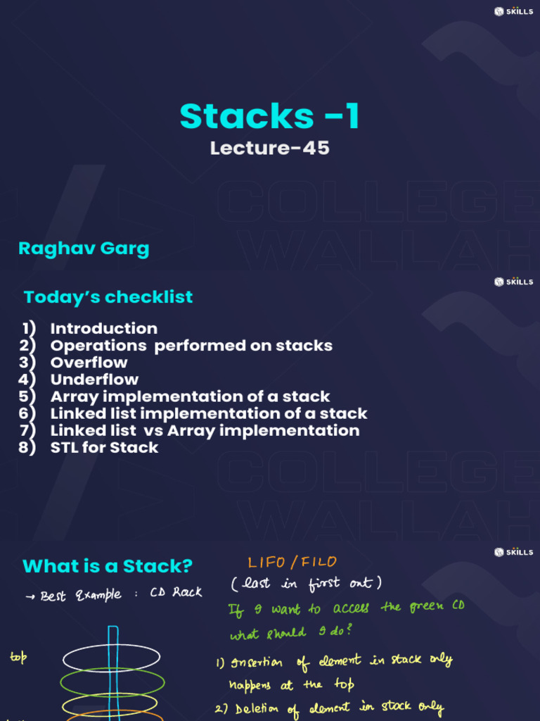 Stacks 01 _ Class Notes __ (DECODE DSA With C++ 2.0) | PDF