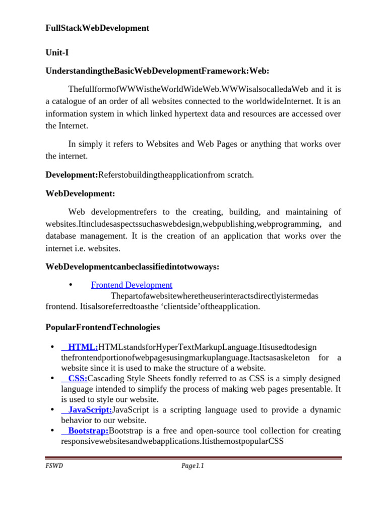 Unit I: Basics of Full Stack Web Development Frameworks - Studocu