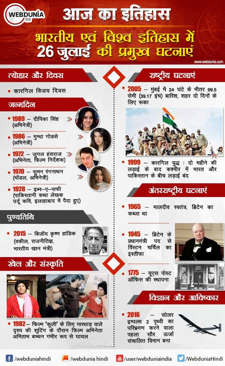 आज का इतिहास : भारतीय एवं विश्व इतिहास में 26 जुलाई की प्रमुख घटनाएं ...