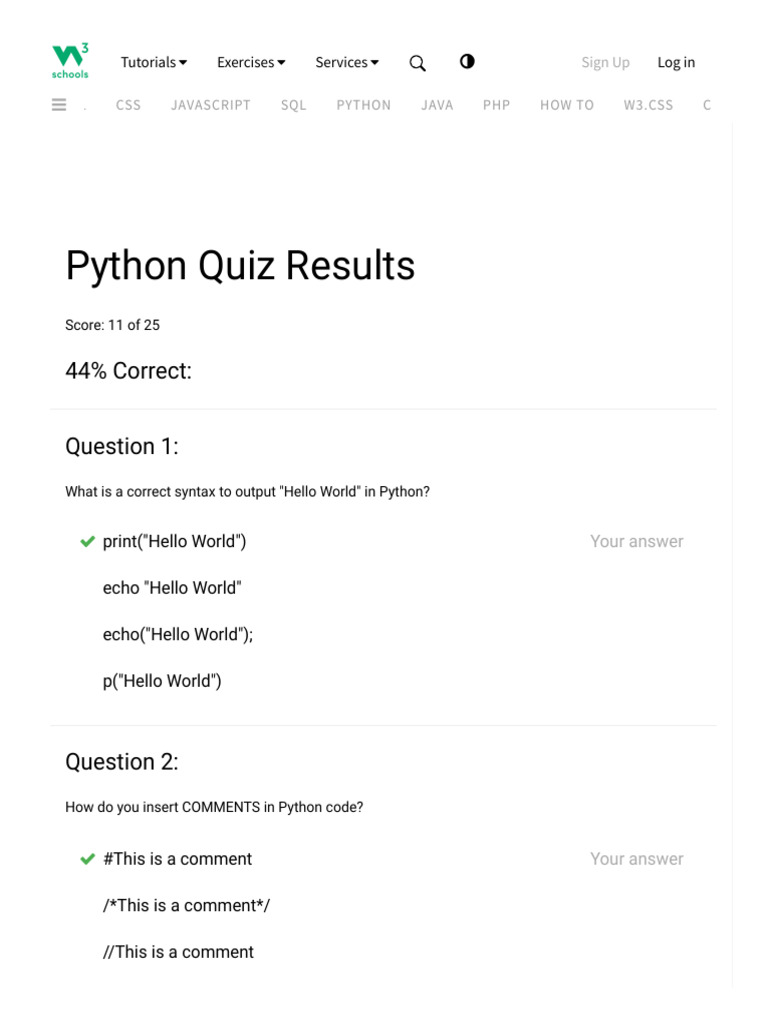 Python Quizzes || Play Free Online Quiz || Code Practice
