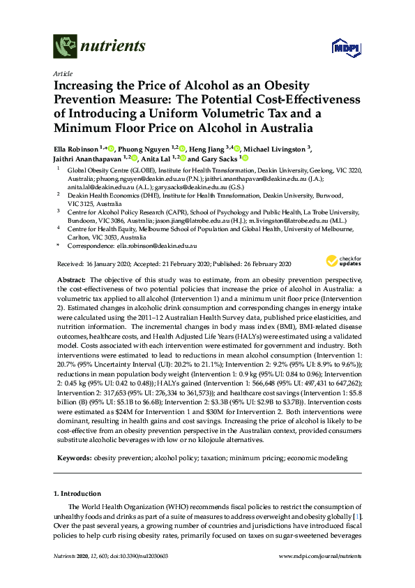 (PDF) Increasing the Price of Alcohol as an Obesity Prevention Measure ...