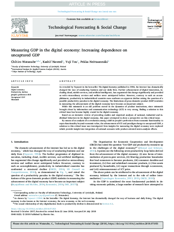 (PDF) Measuring GDP in the digital economy: Increasing dependence on ...