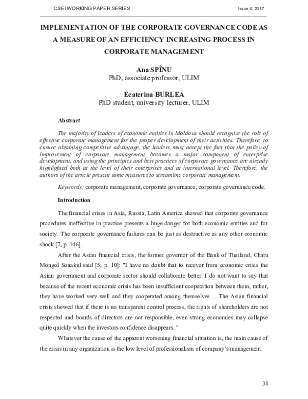 (PDF) Implementation of the corporate governance code as a measure of ...