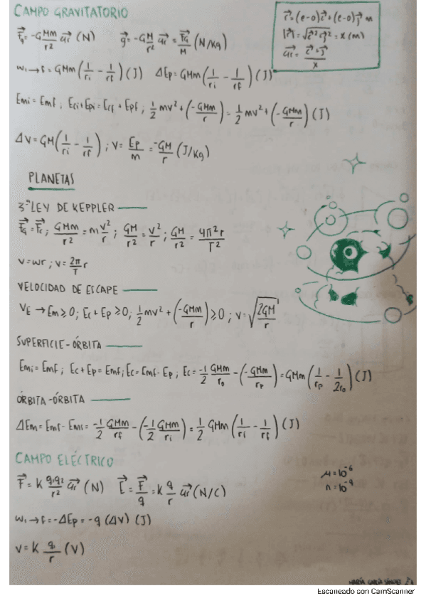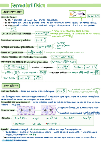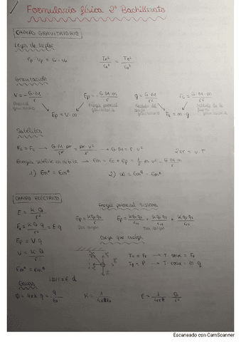 Formulario Física 2 Bachillerato PDF: Campo Gravitatorio y Eléctrico ...