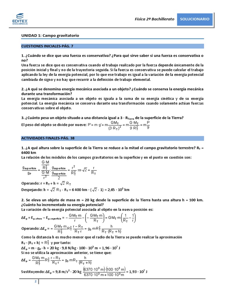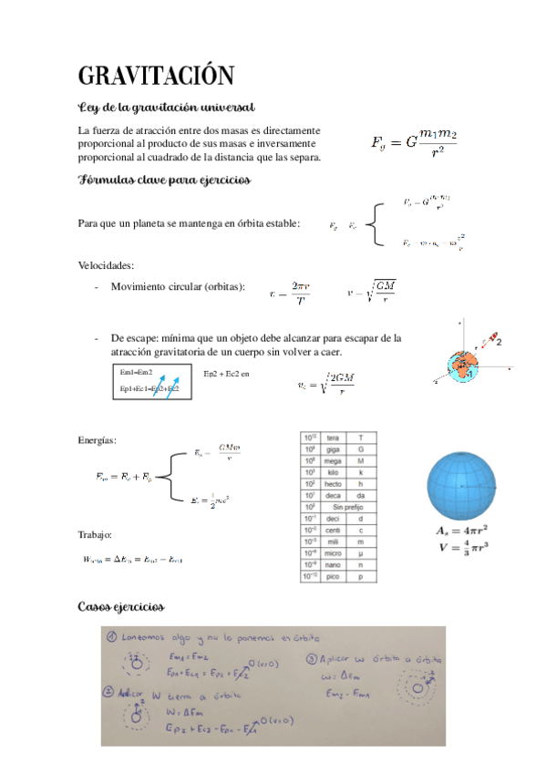 BACH2 FÍSICA Campo Gravitatorio - Formulario | PDF | Orbita | Ley de ...
