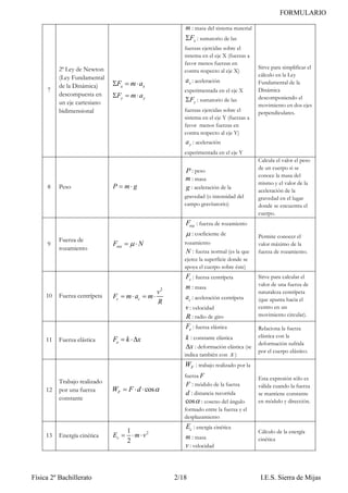 Formulario de Fisica Bachillerato | PDF | Fuerza | Velocidad