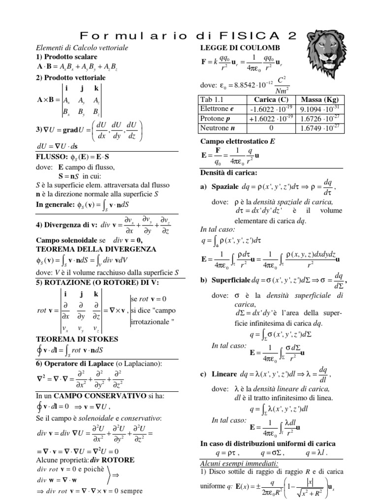 Formulario Fisica 2 - Completo | Formulari di Fisica | Docsity