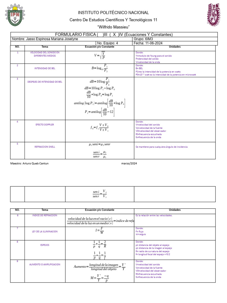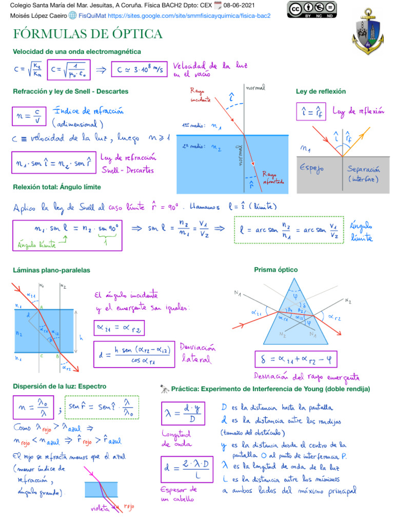 BACH2 FÍSICA Óptica - Formulario | PDF