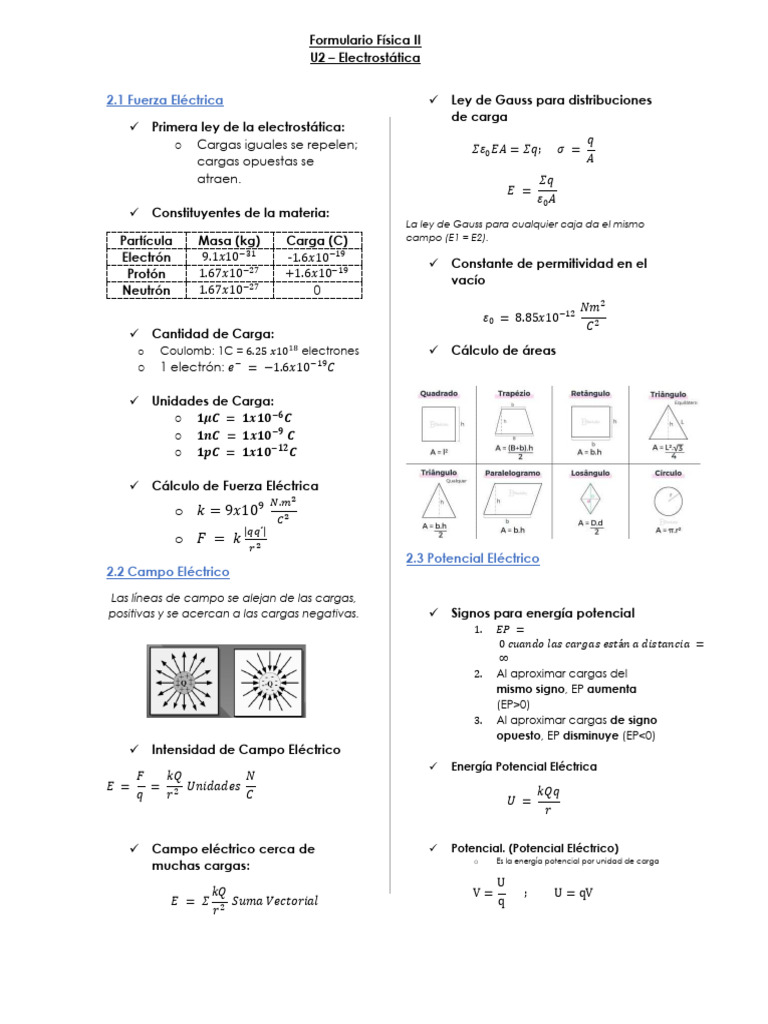 Formulario de Física II - FIME UANL: Conceptos Clave y Fórmulas - Studocu
