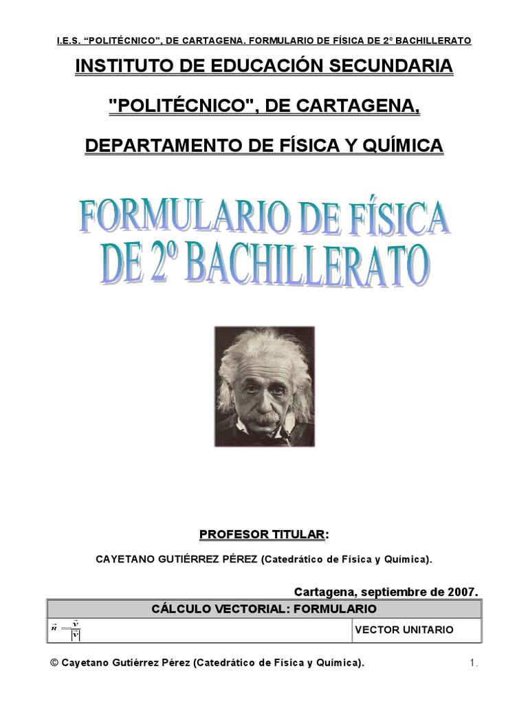 Formulario de Fisica de 2 Bachillerato | PDF | Métodos y materiales de ...